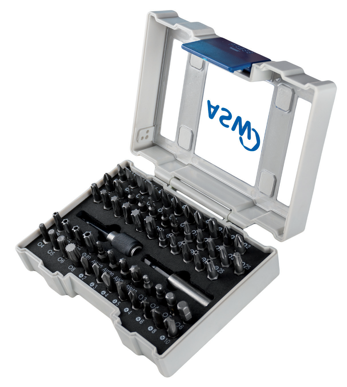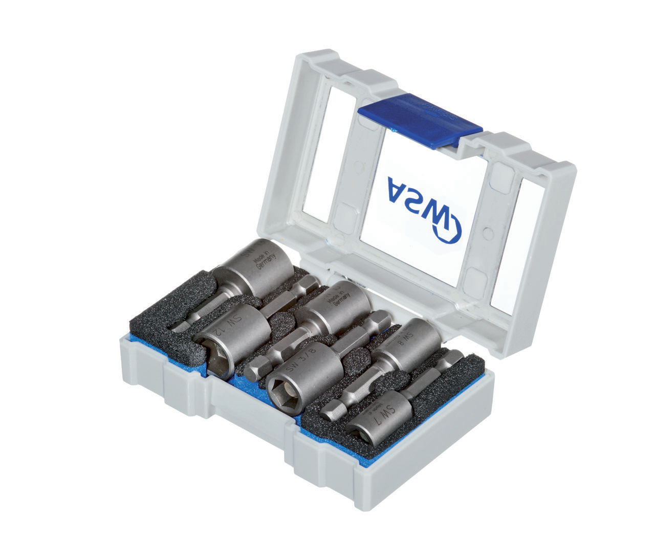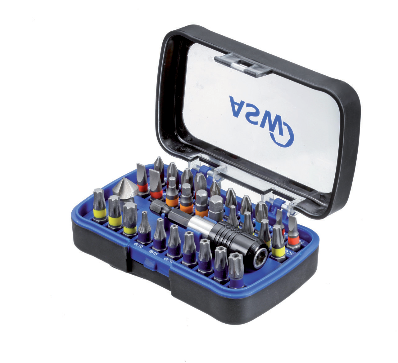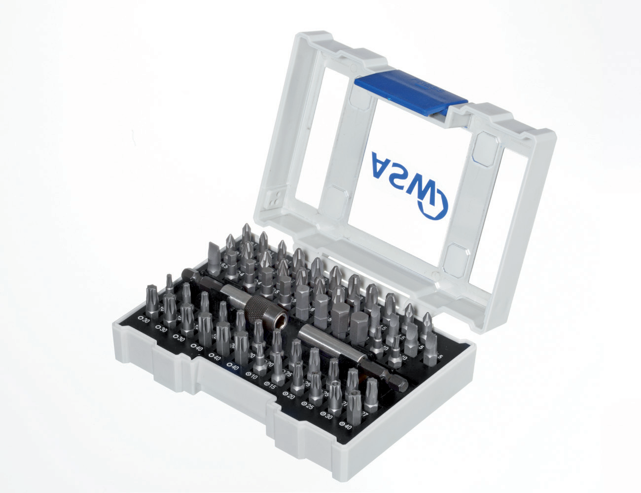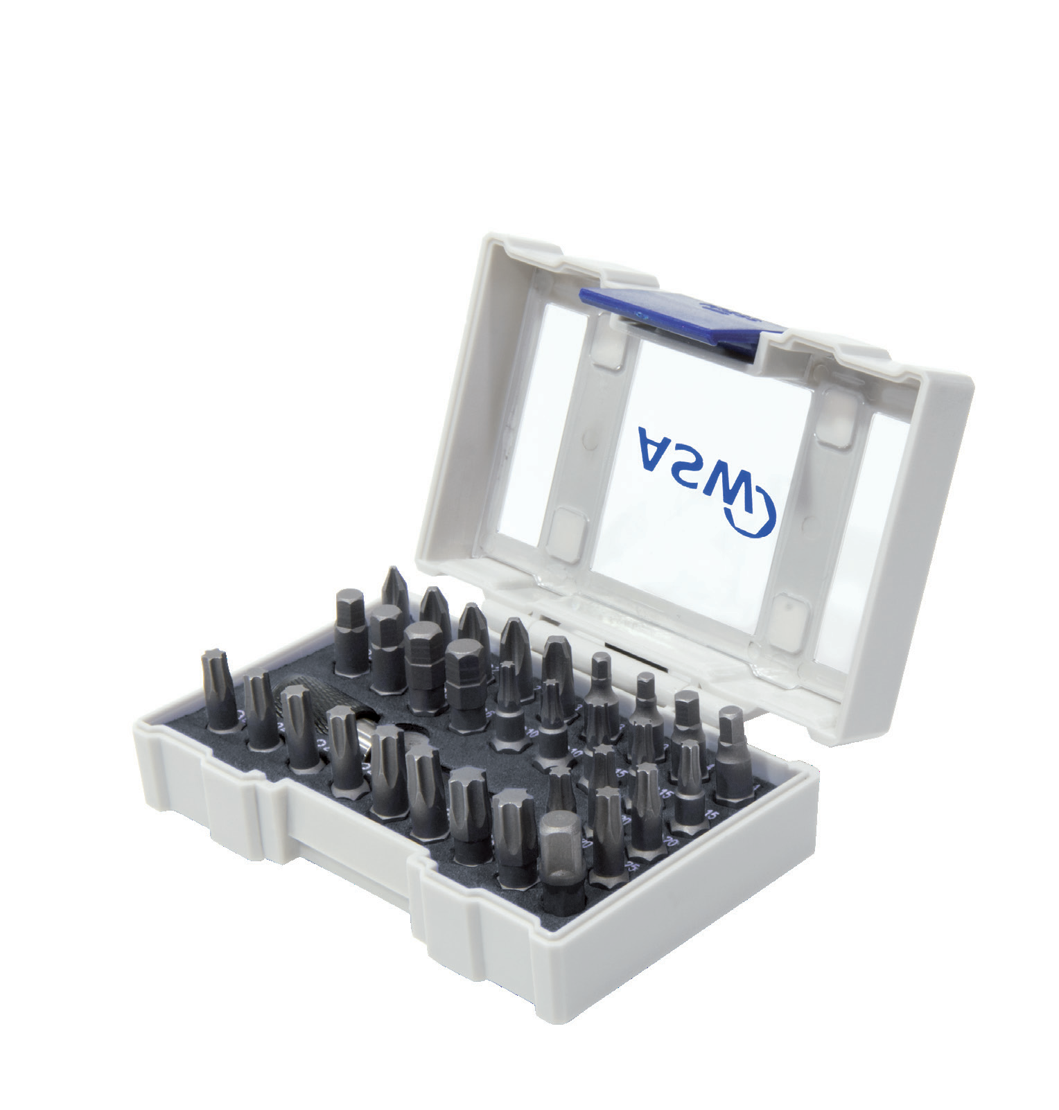 The ethylene vinyl acetate (EVA) insert holds bits and holders securely, even if the box is dropped. Two variants are available in our range: the new SHOCKPROOF box is equipped with high-quality bits (C 6.3) in a comprehensive selection and also contains the ASW-IMPACT bit holder with magnet and snap ring from our own forge. The box can be individually equipped from a quantity of 250 pieces. We will gladly answer your specific request.